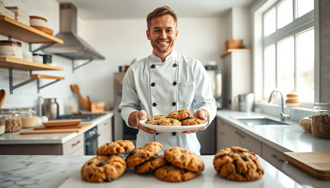a joyful baker in a warm kitchen with freshly baked cookies.